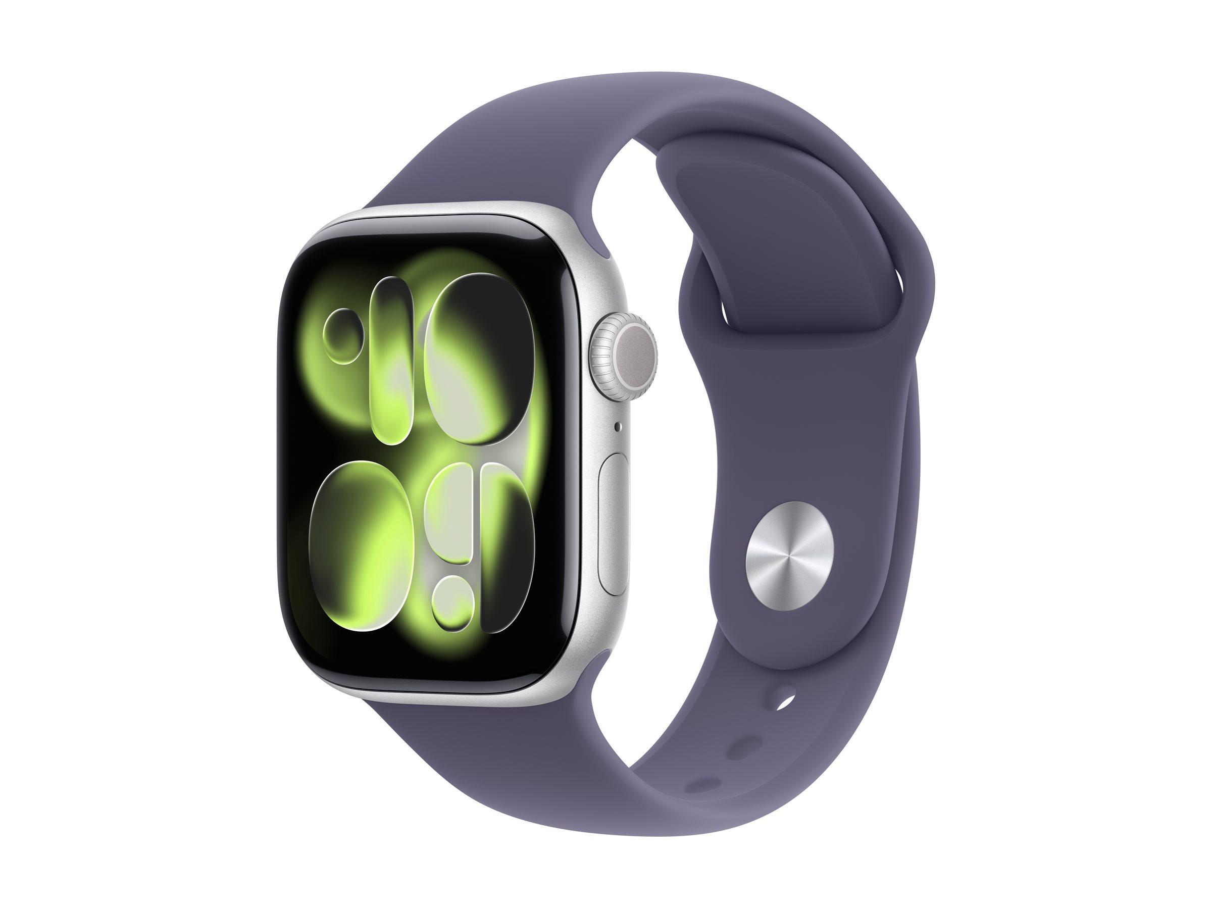 Apple Watch Series 11 (GPS) - 42 mm - silver aluminium - smart watch with sport band - fluoroelastomer - purple fog - band size: M/L - 64 GB - Wi-Fi 4, UWB, Bluetooth - 30.3 g