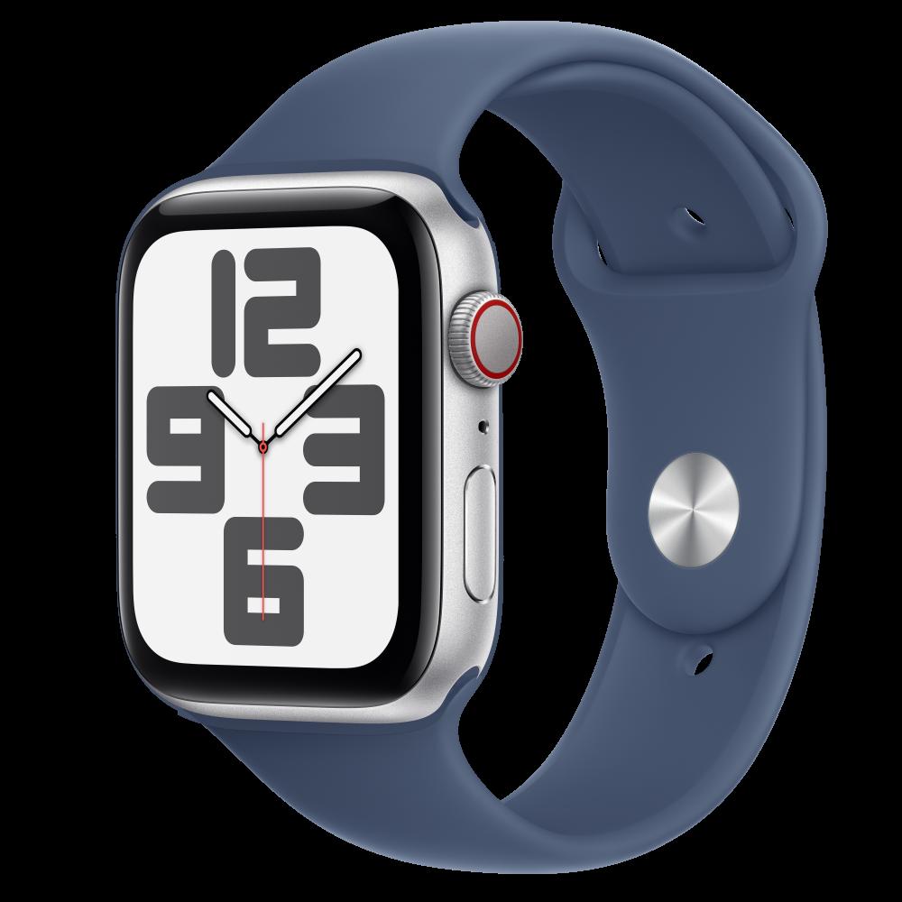 Apple Watch SE2 v3 Cellular 44mm Silver Alu Case with Denim Sport Band - M/L