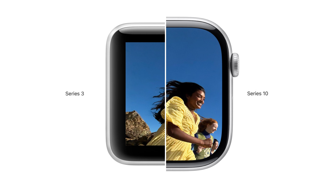Series 10 има най-голямата площ на екрана от всички Apple Watch. Площта на екрана му е с до 75% по-голяма от тази на Series 3 и с до 30% по-голяма от тази на Series 4, 5, 6 и SE. Така че можеш да виждаш и правиш още повече.