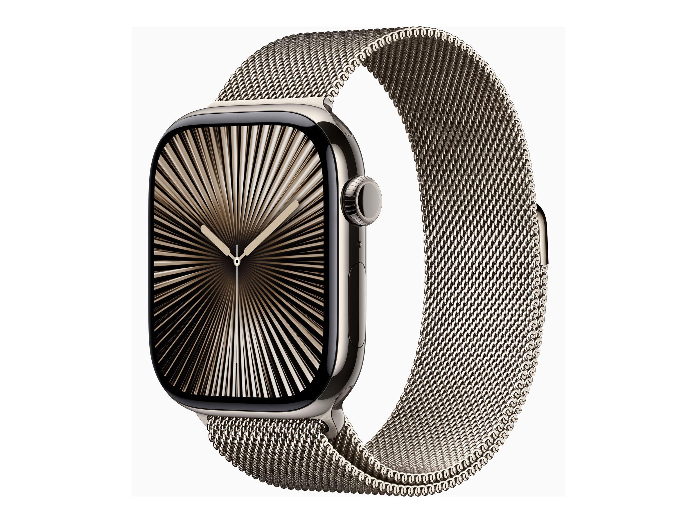 Apple Watch Series 10 (GPS + Cellular) - 46 mm - natural titanium - smart watch with milanese loop - stainless steel mesh - natural - band size: S/M - 64 GB - LTE, Wi-Fi 4, UWB, Bluetooth - 4G - 41.7 g