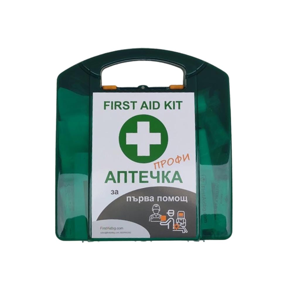 ПВЦ чанта за първа помощ на работното място с възможност за монтиране на стена. Подходяща е както за търговски обекти, така и за предприятия и цехове с по-голям брой служители. Закрепва се на стената с подвижна скоба, от която може да се свали лесно и да се пренесе до мястото на инцидента. Обозначена е с международният знак за първа помощ за бързо локализиране при нужда.