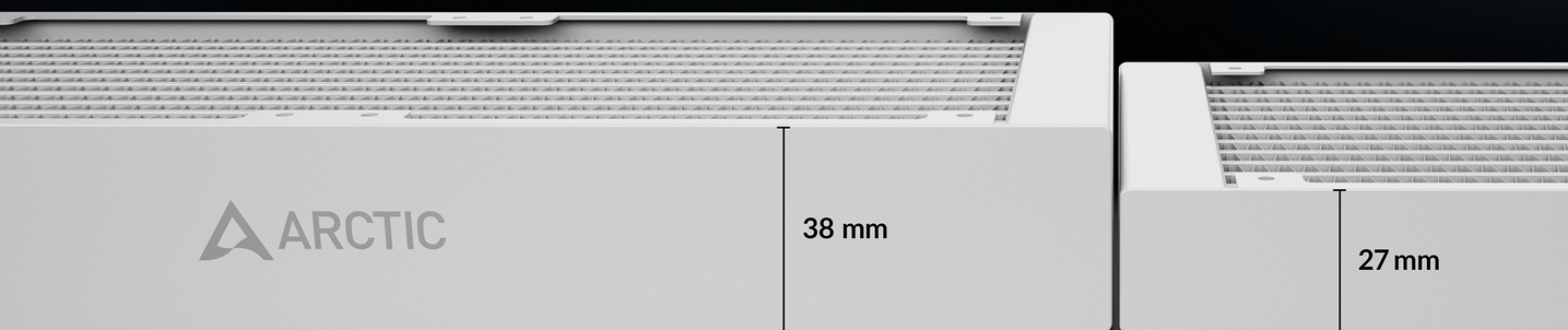 The 38 mm radiator not only enhances heat dissipation but also holds more liquid than conventional 27 mm radiators. This reduces heat buildup and ensures more efficient handling of temperature spikes.
