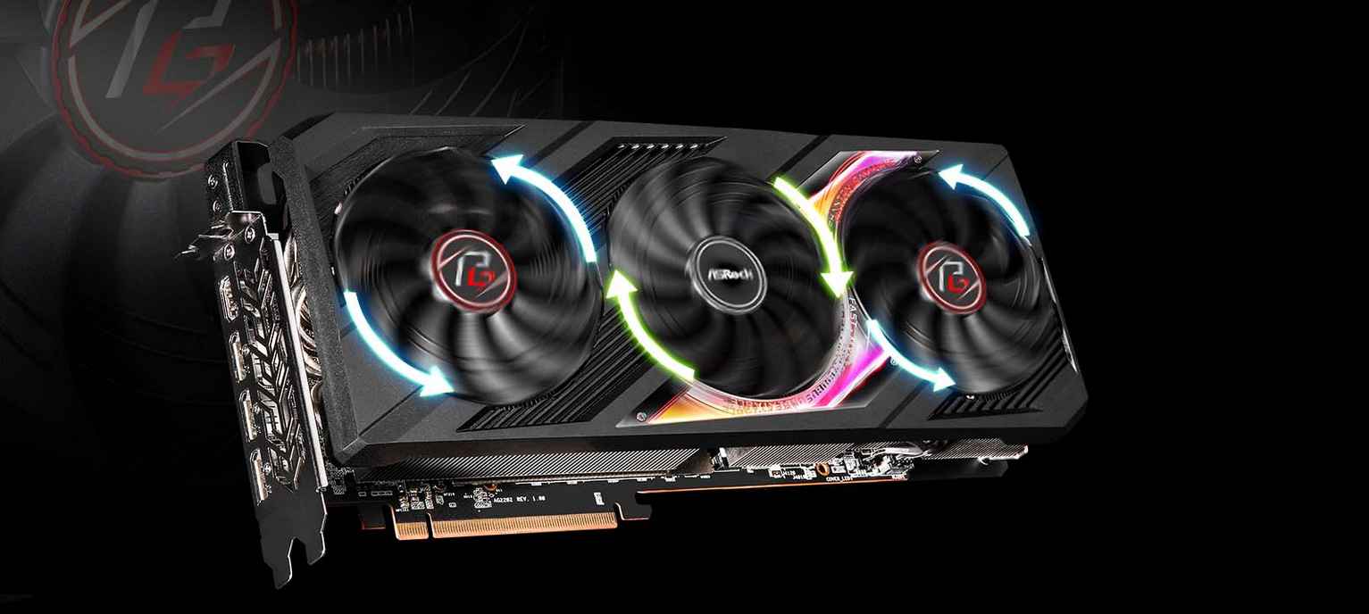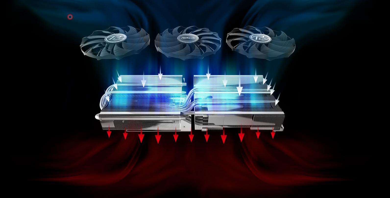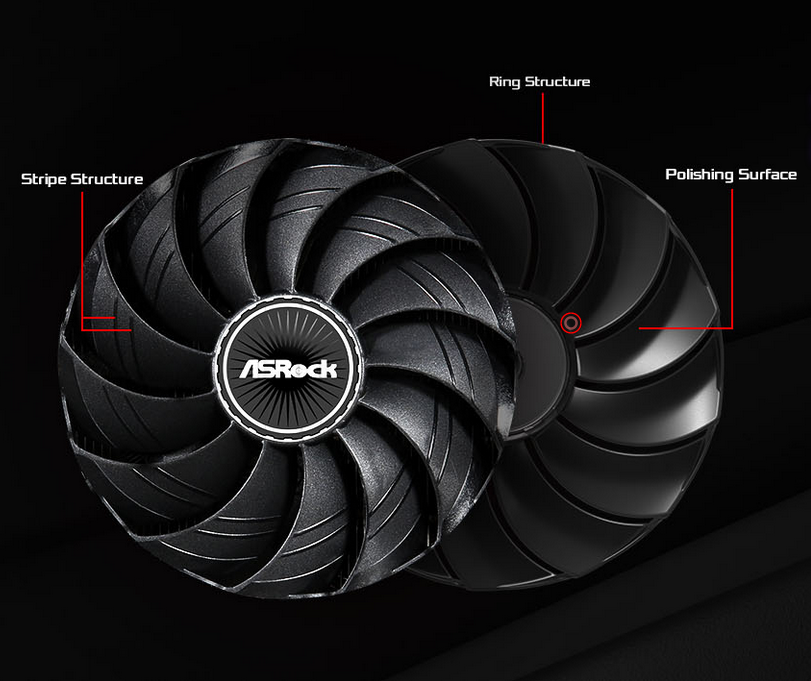 ASRock’s all new Striped Ring Fan get more lateral intake and to provide better airflow through the cooling array.
