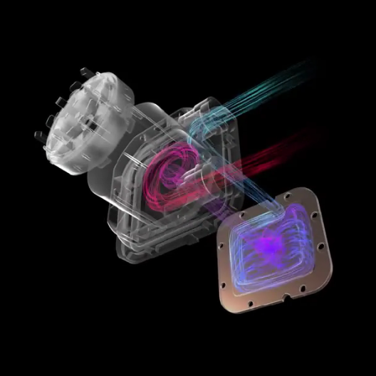 The Ring-Frame Blade design features reinforced structure to optimize airflow concentration, generating stronger static pressure and deeper radiator penetration.