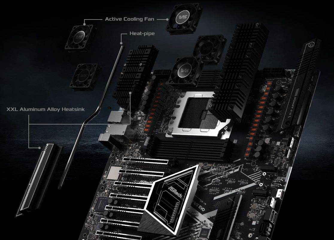 It is equipped with a composite VRM heatsink active cooling fans, XXL aluminum heatsinks and heat pipe for maximum heat dissipation.
