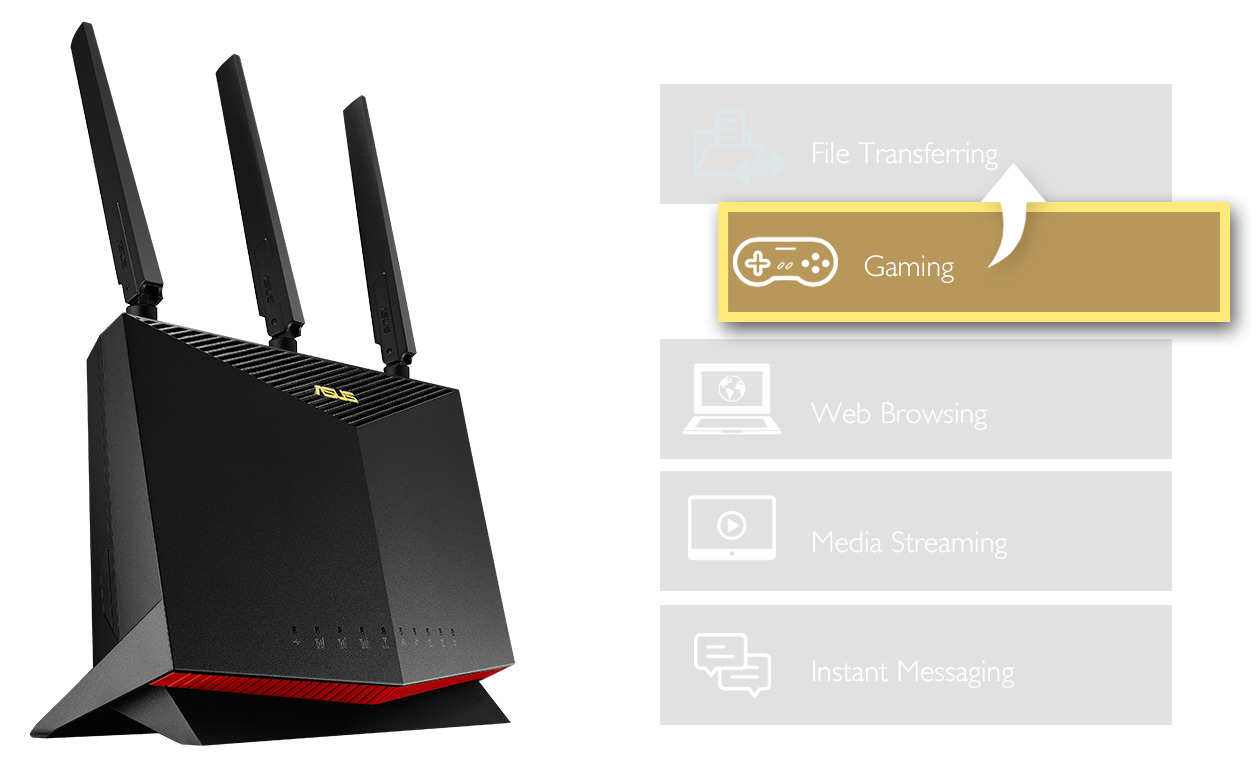 Powered by 5th generation Wi-Fi (5G Wi-Fi) and 4x4 MU-MIMO technology, the 802.11ac chipset gives the 4G-AC86U faster wireless speeds than N technology. At 2.4 GHz, the TurboQAM technology delivers 4x4 802.11n reaches 800 Mbps, while on the 5GHz band it blazes to 1733 Mbps. The upgraded bandwidth has the higher capacity you need to increase Wi-Fi enjoyment at home. You can enjoy ultra-smooth online video streaming, gaming, snappier web surfing and other bandwidth-demanding tasks without a wired connection.