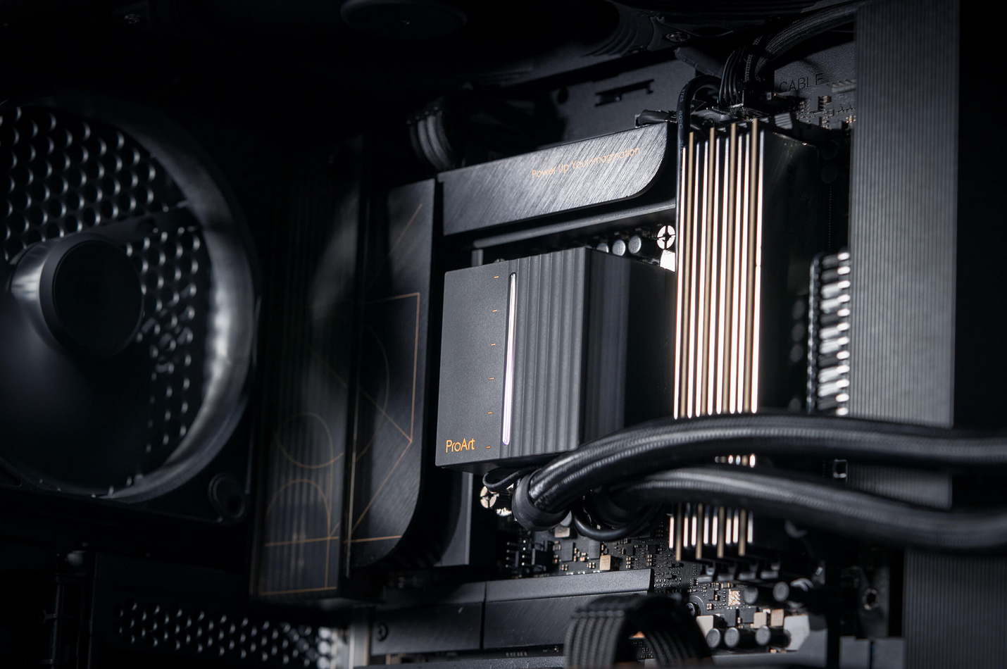 Experience exceptional cooling performance and quiet operation. Powered by a robust three-phase motor and Alphacool Apex Stealth Metal Power fans, the ProArt LC 240 expertly integrates premium tech into an elegantly understated design. An illuminated meter on the pump cover also provides live system stats in the signature minimalist ProArt manner for real-time information at a glance. And its subtle and graceful aesthetics add a touch of refinement to your setup. Cool, quiet and classy—the perfect trifecta for any and all content creators.