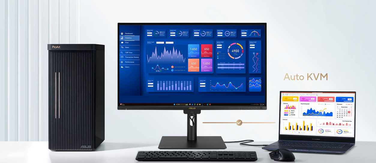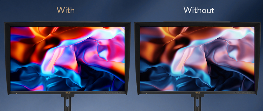 ProArt monitor is equipped with ASUS Light Sync technology, featuring two sensors designed to ensure remarkable color accuracy and precise color temperature, right on startup.