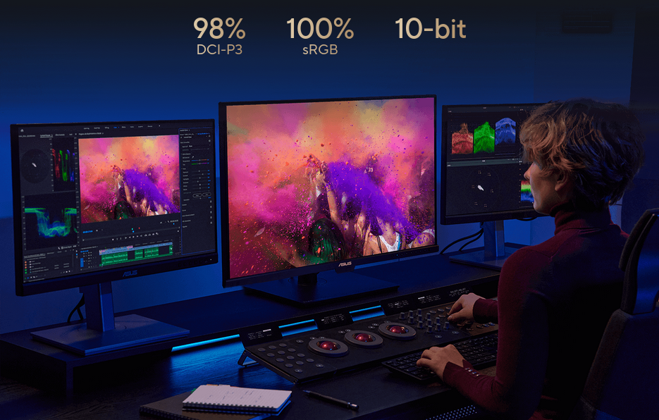 PA27UCGE exceeds industry color reproduction standards with its 98% DCI-P3 gamuts, making it ideal for video editing and other post-production tasks. 10-bit IPS panel is able to showcase more than 1.07 billion colors to give content creators a vast color spectrum to work with.