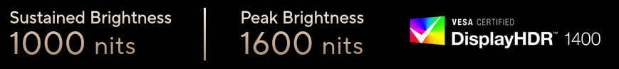 A peak brightness of 1600 nits and industry-leading 1000 nits of full-screen sustained brightness allows for outstanding contrast between the deepest blacks and gleaming whites.
