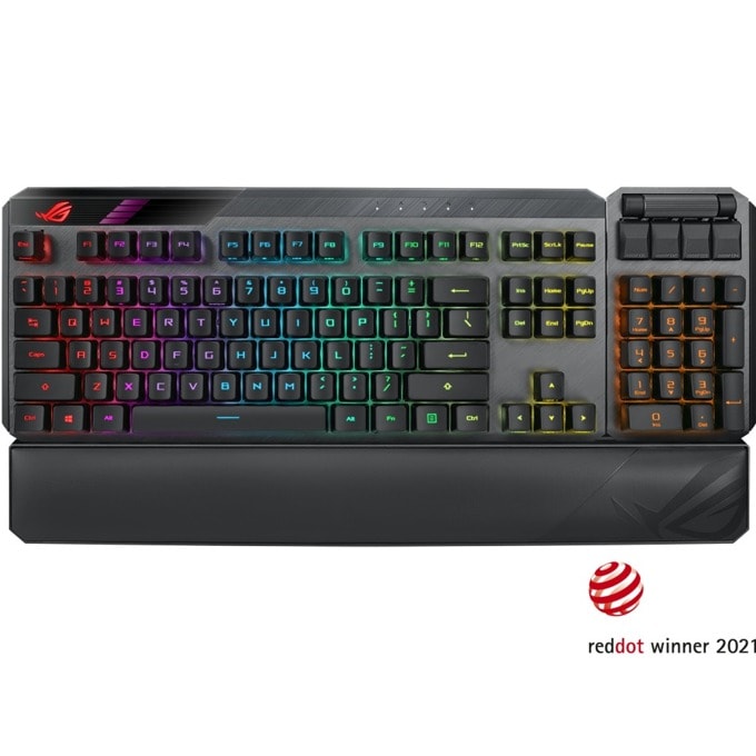 ROG Claymore II modular TKL 80%/100% gaming mechanical keyboard with ROG RX Optical Mechanical Switches, detachable numpad & wrist rest, wired & wireless 2.4G modes, extra customizable clicky hotkeys, volume control wheel and wireless Aura Sync.