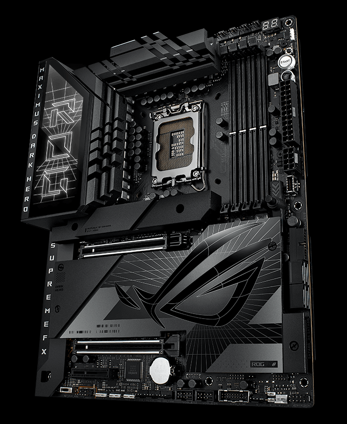 The ROG Maximus Z790 Dark Hero boasts robust cooling, WiFi 7 and ample PCIe 5.0 slot for unmatched performance, and it offers full compatibility with 14th Gen Intel® Core™ processors. Meanwhile, its stealthy design is accentuated by new Polymo lighting, which illuminates the I/O shroud with a microstructural array of dual-layer RGB and adds a personalized touch of style to your gaming setup.
