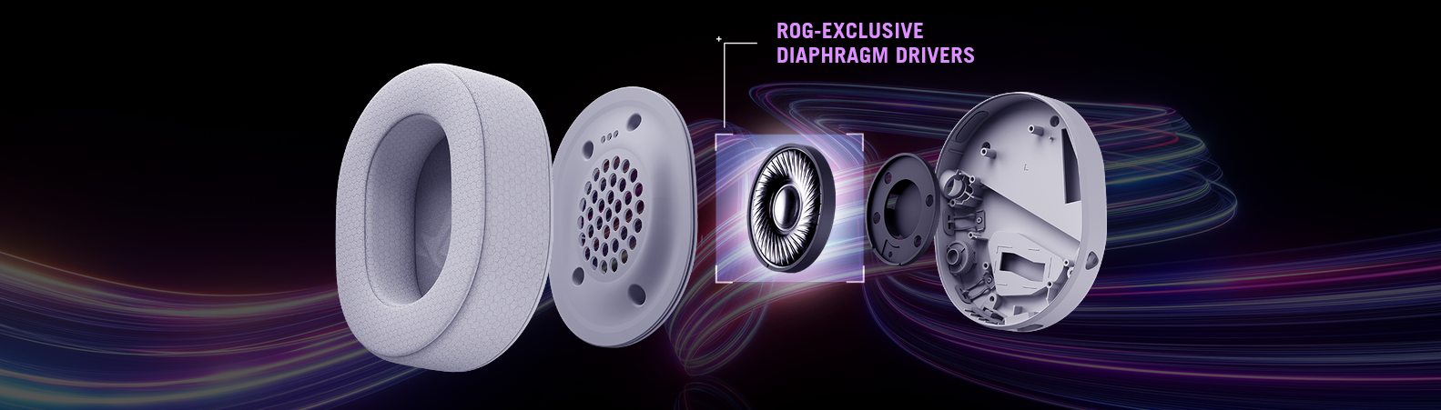 ROG-exclusive 50mm titanium-plated diaphragm drivers deliver high-resolution acoustic performance with crisp, detailed treble and reduced distortion for lifelike in-game sound.