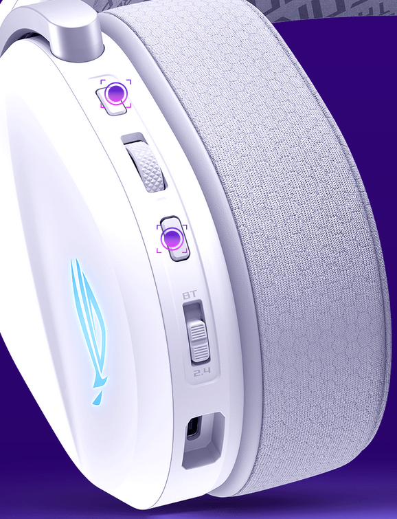 Adjustable Elastic Headband The three-level adjustable soft elastic strap reduces pressure to ensure a comfortable fit when using it on the go or for all-day gaming. The headband features ROG markings and can be detached to accommodate different head shapes. | ![]() |
