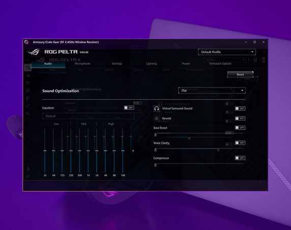 Armoury Crate & Aura Sync Install the original Armoury Crate software to synchronize light effects with other Aura Sync-enabled products. Access 16.8 million of colors, preset effects, and wallpapers to take your setup to the next level. | Armoury Crate Gear Made exclusively for ROG Pelta, Armoury Crate Gear is a software that lets you check battery level, adjust RGB lighting, and tweak EQ settings for tailored audio experiences. |