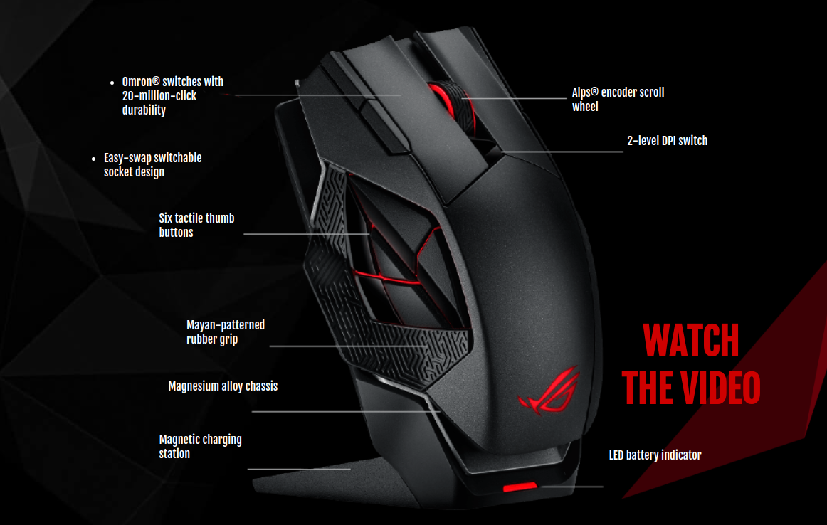 ROG Spatha has a total of 12 programmable buttons, including six thumb buttons, to give you intuitive command and control. It fits perfectly in your hand, and has been ergonomically-designed to give you tactile feedback and response.