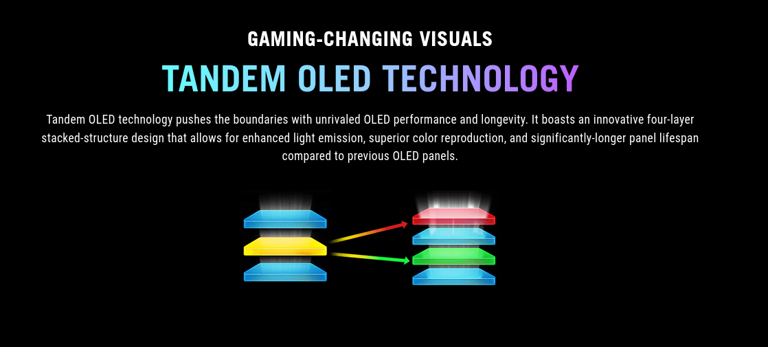 - New Tandem OLED technology for 15% higher peak brightness, 25% larger color volume, and 60% longer OLED lifespan versus previous-generation WOLED panels