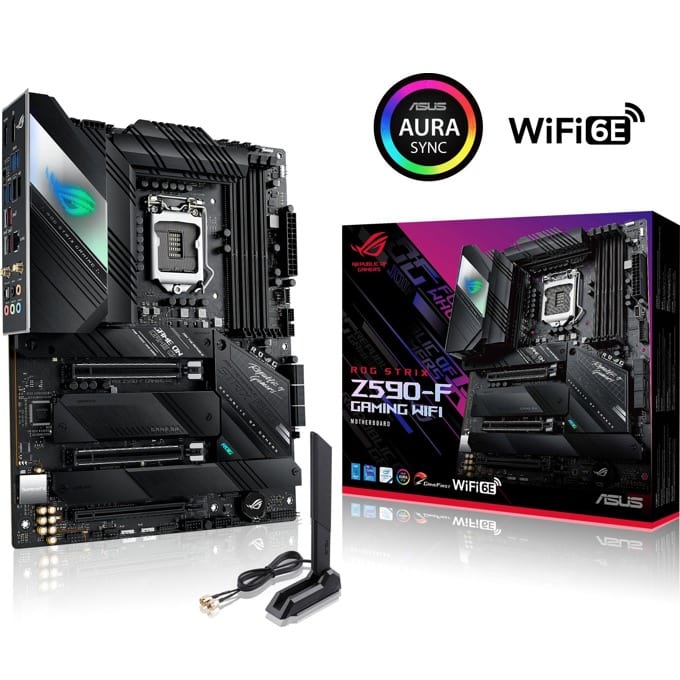 Intel® Z590 LGA 1200 ATX motherboard with PCIe 4.0, 14+2 teamed power stages, Two-Way AI Noise Cancelation, AI Overclocking, AI Cooling, AI Networking, WiFi 6E (802.11ax), Intel® 2.5 Gb Ethernet, four M.2 slots with heatsinks, USB 3.2 Gen 2x2 USB Type-C®, SATA and Aura Sync RGB lighting