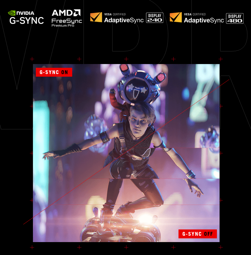 The extremely high contrast ratio offered by OLED technology ensures the deepest black hues and vivid colors. Plus, an astounding 0.03 ms gray-to-gray (GTG) response time ensures supersmooth, low-latency gameplay.