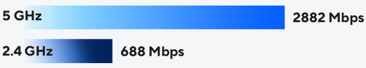 WiFi 7 (802.11be) (5GHz): up to 2882 Mbps
