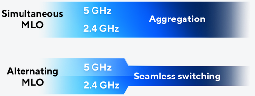 ![]() | Comprehensive MLO Support Multi-Link Operation (MLO) enables buffering-free connection by intelligently combining and switching between the 2.4 GHz and 5 GHz bands. ASUS RT-BE55 is built for the future of all WiFi 7 devices, regardless of the MLO mode they use*. *Supported MLO modes and bands may vary by device. Please refer to device specifications for details. |