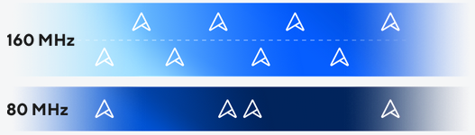 ![]() | Advanced 160 MHz Channels The RT-BE55 supports ultrawide 160 MHz channels, delivering ultrafast data transfer rates, reduced latency, and enhanced performance for a smoother network experience. *Compared to WiFi 6E 160 MHz channels |