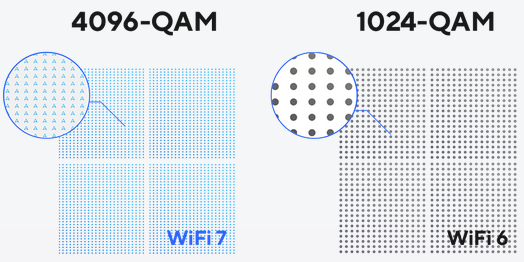 ![]() | Efficient 4K-QAM Transmission Compared to 1024-QAM with WiFi 6/6E, 4096-QAM allows each signal to more densely incorporate larger amounts of data, delivering up to 20% more efficient data transmission*. *Compared to WiFi 6/6E |