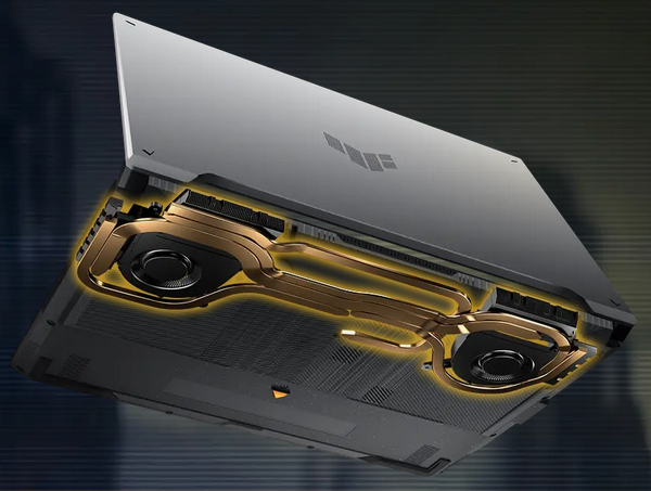 Blow away the competition High core count CPUs create more heat when at full load. The TUF Gaming F16 is equipped to handle its high-power CPU with a pair of 84-blade Arc Flow Fans™. Our variable thickness design has the dual benefit of increasing pressure while reducing turbulence, improving cooling performance without extra noise. When paired with 4 exhaust vents and 5 dedicated heatpipes, the 2024 TUF Gaming F16 keeps its cool in even the most demanding games.