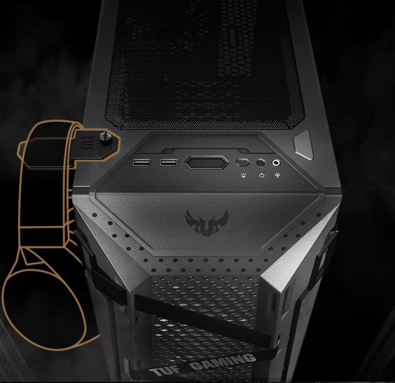 ASUS TUF Gaming GT301 ATX mid-tower compact case with tempered glass side panel, honeycomb front panel, 120mm AURA Addressable RGB fan, headphone hanger and 360mm radiator support.