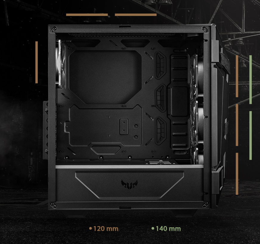OUTSTANDING COMPACT GAMING TUF Gaming GT301 is a feature-packed case and made for the masses, the optimized compact case supports up to 4 x 2.5” SSDs, 2 x 3.5” HDDs and quick removal dust filter in front, top and bottom. |