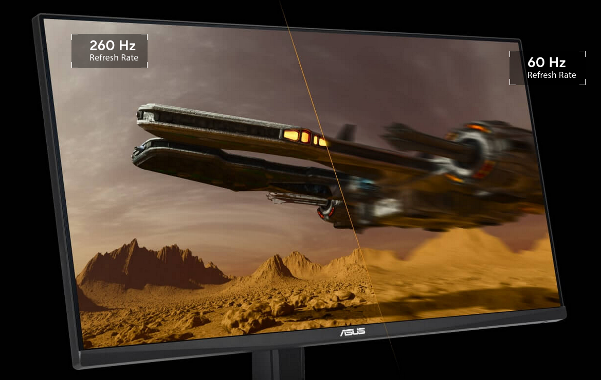 With overclock to 260Hz refresh rate decimates lag and motion blur to give you the upper hand in first person shooters, racers, real-time strategy, and sports titles. This ultrafast refresh rate lets you play at the highest visual settings and lets you react instantly to what's onscreen — so you'll get that first strike in.