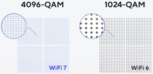 Efficient 4K-QAM Transmission Compared to 1024-QAM with WiFi 6/6E, 4096-QAM allows each signal to more densely incorporate larger amounts of data, delivering up to 20% more efficient data transmission*. *Compared to WiFi 6/6E | ![]() |
