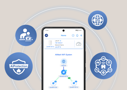 Values Beyond Extension AiMesh goes beyond just extending coverage or seamless roaming. It works with all compatible ASUS routers, offering easy management, advanced security, and smart home features across your entire network. | ![]() |