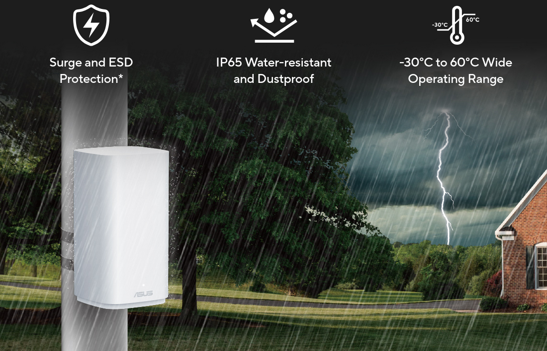 Powered by WiFi 7 and next-gen AiMesh technology, the ASUS ZenWiFi BD4 Outdoor router delivers blazing-fast speeds up to 3600 Mbps, helping ensure seamless and reliable WiFi from your backyard to every corner of your home. IP65 water-resistance and flexible mounting options make it ideal for outdoor installation in a variety of settings. Dual 2.5G PoE ports further streamline setup by eliminating the need for an electrical outlet. In addition, a suite of advanced network security features and Smart Home Master SSIDs deliver premium protection and effortless control for your connected devices.