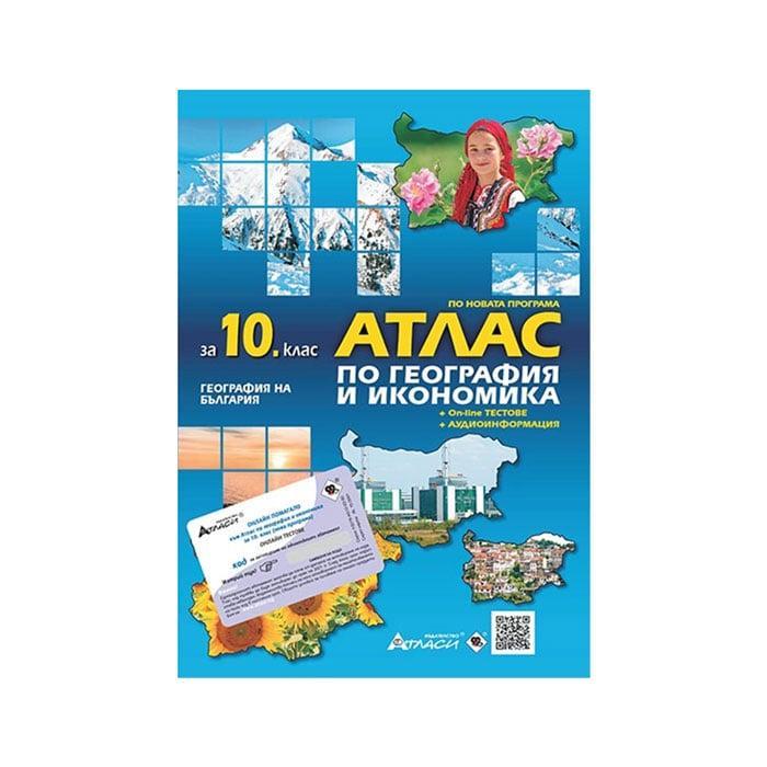 Атласът е съставен в съответствие с изискванията на новата учебна програма по география и икономика за 10. клас за учебната 2019 / 2020 г. и е съвместим с учебниците "География и икономика за 10. клас" на издателство "Булвест-2000" и "География и икономика за 10. клас" на издателство "Анубис". В атласа ще откриете специфичен матричен баркод (QR код), с който имате бърз и лесен достъп до допълнителна аудиоинформация по някои от темите.