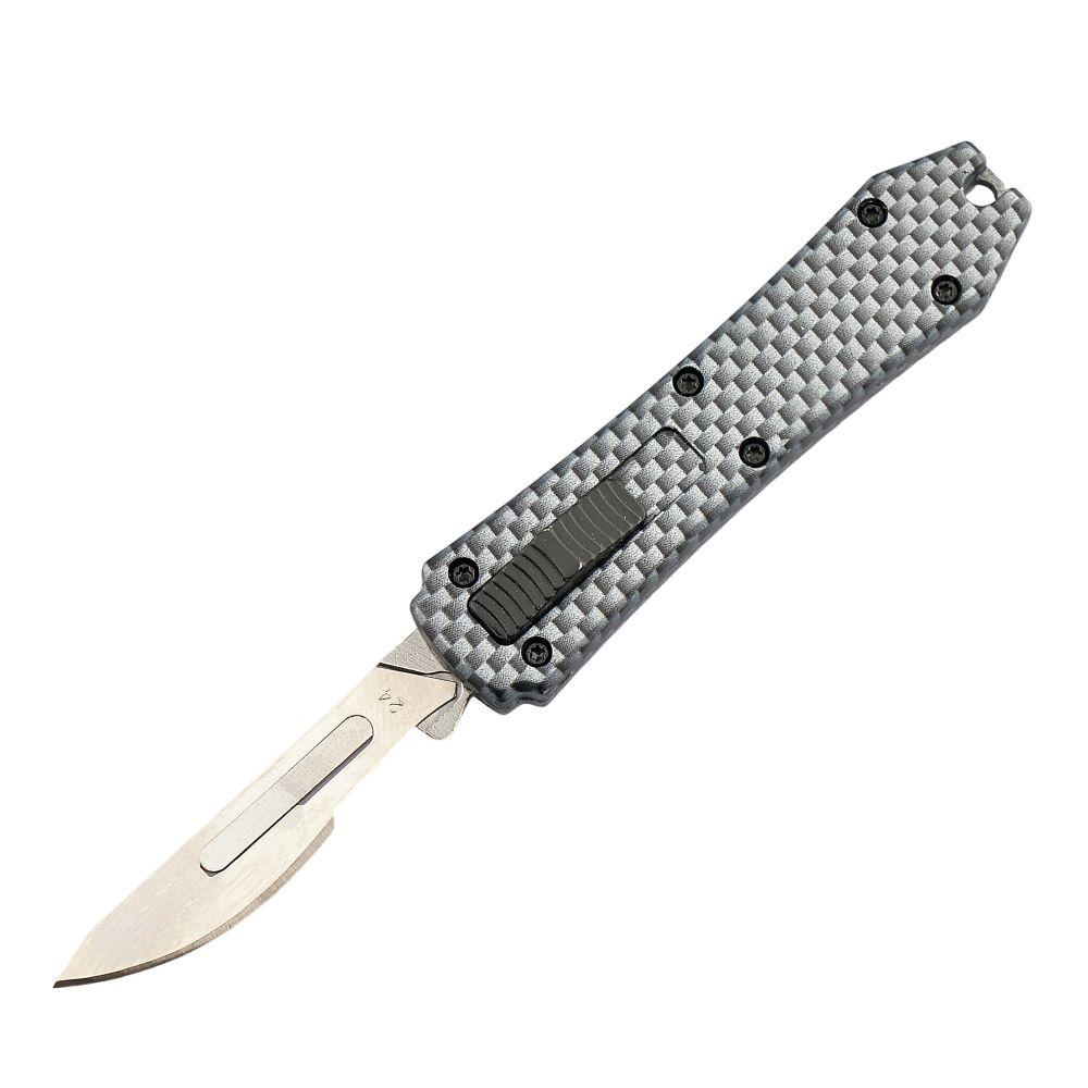 В комплект с 10 броя сменяеми остриета - тип скалпел.