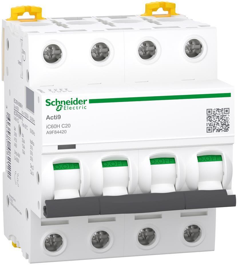 Автоматичен прекъсвач Acti 9 iC60H 4P 20A крива C 10kA SE
