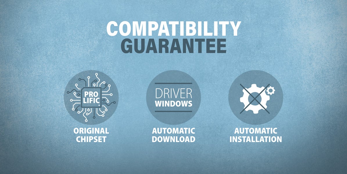 The highest level of compatibility thanks to the original Prolific PL2303GT chip.