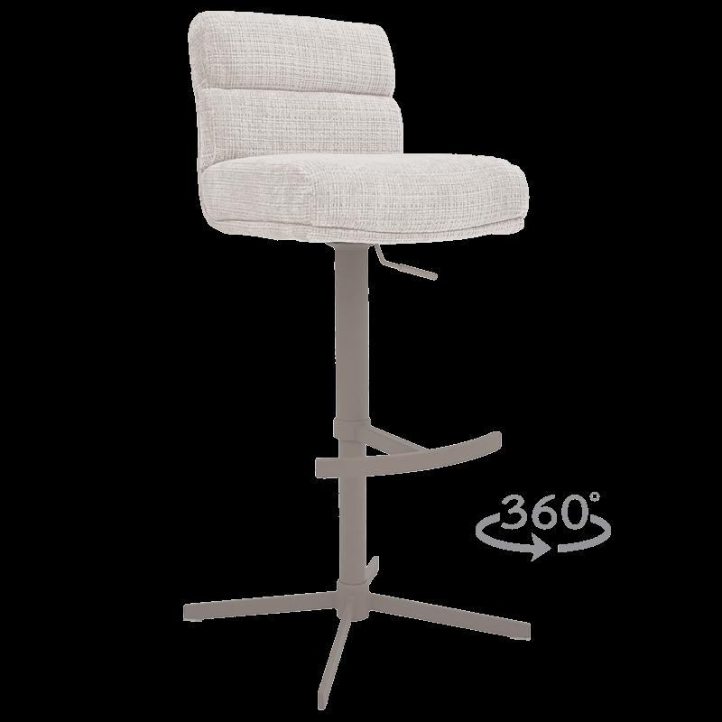 Бар стол VANDRA впечатлява с модерна визия и уютно усещане, благодарение на меката дамаска и комфортната седалка с покет пружини. Металната основа в цвят крем перла осигурява стабилност, а плавното регулиране на височината прави стола практичен избор както за домашен бар, така и за модерна кухня или стилно заведение. Перфектен баланс между дизайн, комфорт и функционалност. Пълна информация за размерите и характеристиките на модела ще намерите в таб/поле „Техническа информация“