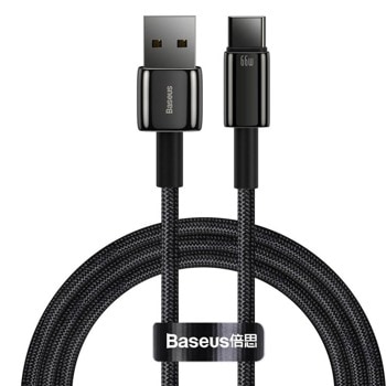 Кабел Baseus Tungsten Gold USB to USB-C Cable PD 2.0 66W (CATWJ-C01), от USB-A(м) към USB-C(м), 2m, 66W, черенКабел Baseus Tungsten Gold USB to USB-C Cable PD 2.0 66W (CATWJ-C01), от USB-A(м) към USB-C(м), 2m, 66W, черен