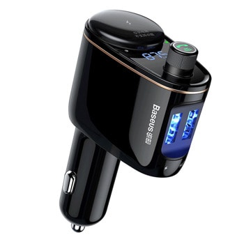FM трансмитер за кола Baseus CCTM-E01, с LED дисплей, Bluetooth, слот за MicroSD карта, 3.5мм жак, 2 x USBFM трансмитер за кола Baseus CCTM-E01, с LED дисплей, Bluetooth, слот за MicroSD карта, 3.5мм жак, 2 x USB