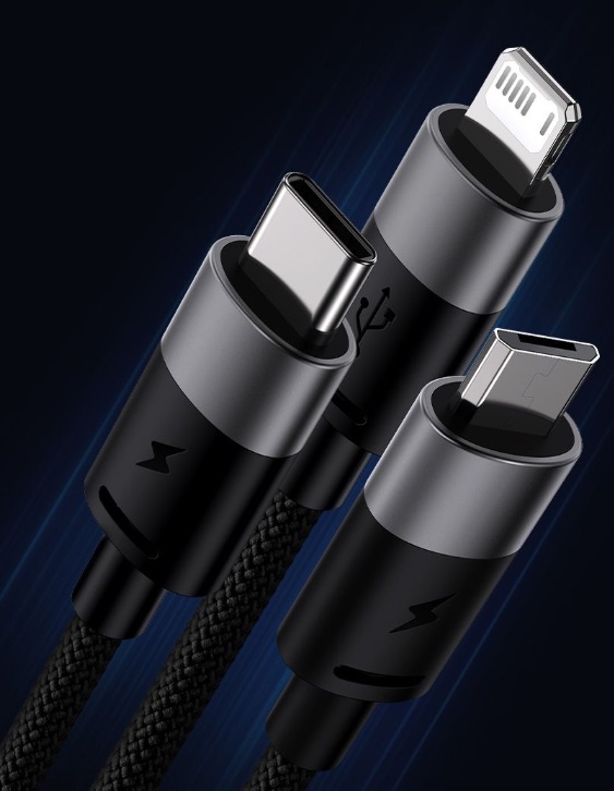 Кабел Baseus StarSpeed 3 в 1 - USB/microUSB/Lightning/USB-C, предназначен за бързо и лесно зареждане на вашия смартфон, таблет и др.