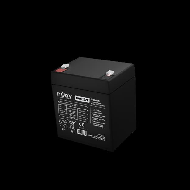 Батерия 12V 20.12W/cell – 5Ah. Тип VRLA без поддръжка. F2(T2) конектор. Живот 3-5 години при пълно и частично зареждане. Ниски нива на саморазреждане – 2% месец. Повече от 260 цикъла на зареждане при 100% DOD. ABS корпус. Капацитет при температура 40°C/25°C/0°C – 103%/100%/86%. Зареждане 14.4V – 15V, максимален ток 1.35A; Размери: 90x70x101mm, 1.45kg.