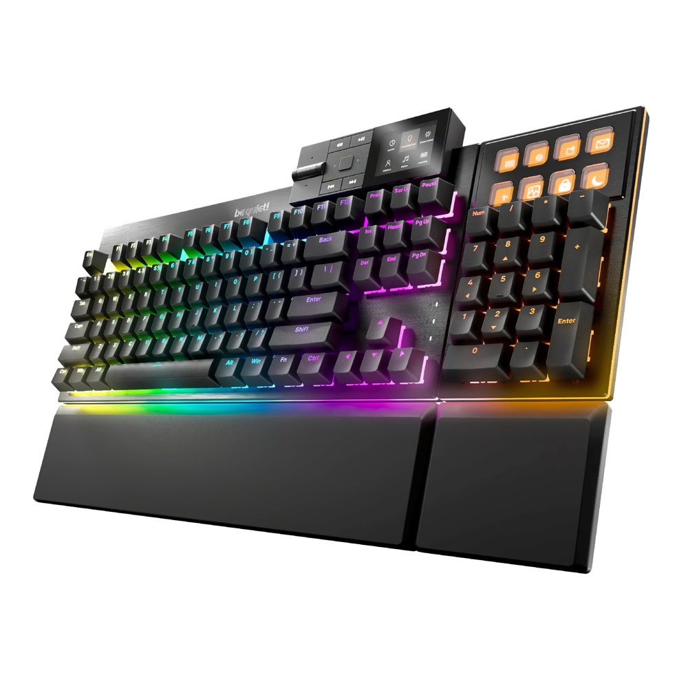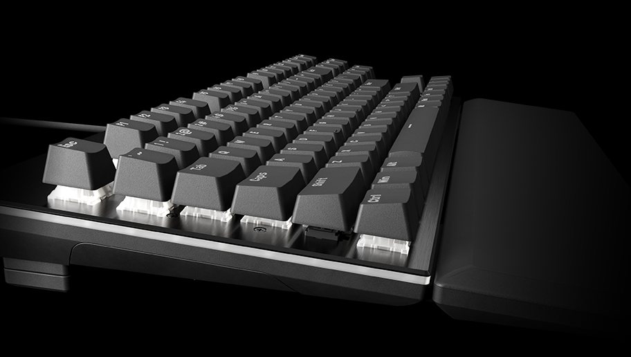 For maximum comfort and customization, the Dark Mount Numpad can be attached to either the left or right side of the keyboard – or left off entirely when space is at a premium, for example at a LAN party. A Media Dock with dedicated media keys and a display always gives you full control over your video and audio settings and can be mounted in 2 positions, either on the left or right. Even the Palm Rest is split and the segment under the Numpad can also be attached on either side.