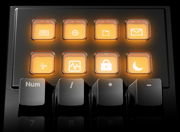 You can fully customize 8 dedicated 140x140 Display Keys. Start your favorite game, go live with your stream, or bind custom macros to the keys and take advantage of the preconfigured icon library or upload your own image. With support for JPGs, PNGs, and other common image formats, Dark Mount perfectly matches your favorite loadout.