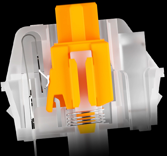 Each keystroke is smooth and precise, yet whisper-quiet. Our silent linear orange switches are pre-lubricated to reduce friction and noise. After careful consideration and testing different materials, we chose a PA66 nylon housing for a muted sound profile and a POM stem for smooth actuations, to provide the best possible typing experience. We even went the extra mile to lubricate the stabilizers that sit under every large key like Space and Enter, which can often make an unpleasant rattling noise if not treated properly, and cushioned the contact point between stabilizer and PCB for extra sound-dampening. Fans of customization will appreciate that each switch is hot-swappable with other 5-pin MX style switches.