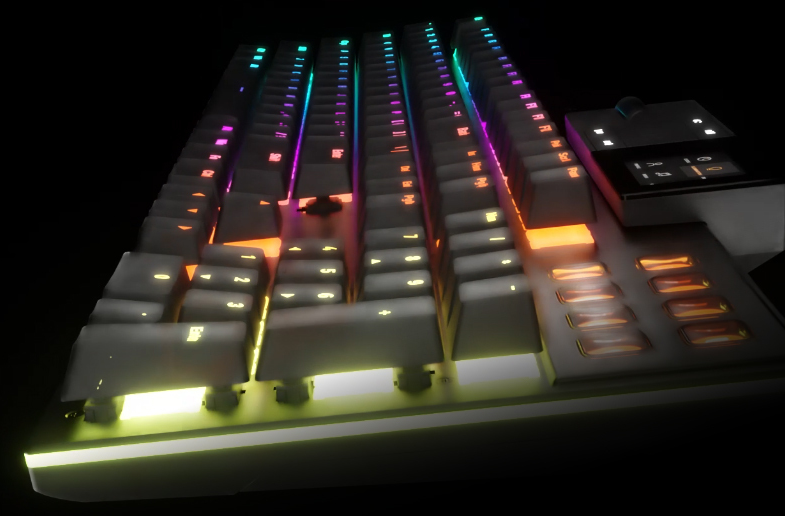 Dark Mount’s customization options are maximized with per-key ARGB lighting. Highlight important keys or create stunning effects. The translucent legends of the double-shot keycaps shine brilliantly thanks to an arched diffuser in each switch. A lightbar surrounding the keyboard creates atmospheric ARGB LED lighting on your desk that goes along with any RGB gaming PC, perfectly in line with your personal style.