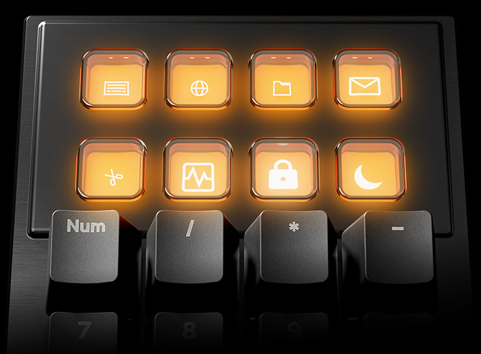 YOUR SKILL ON DISPLAY 8 customizable Display Keys You can fully customize 8 dedicated 140x140 Display Keys. Start your favorite game, go live with your stream, or bind custom macros to the keys and take advantage of the preconfigured icon library or upload your own image. With support for animated GIFs, JPGs, PNGs, and other common image formats, Dark Mount perfectly matches your favorite loadout. | ![]() |