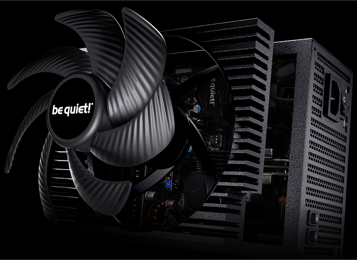 HEAT SINK AND INTEGRATED SILENT WINGS Simply fan-tastic A large heat sink connects to the parts of the power supply that need the most cooling and dissipates a large portion of the heat. Even though a Titanium efficiency power supply does not generate as much heat, active cooling is required to prevent overheating issues under high load. Nothing less than the very best fan of be quiet! cools Dark Power 14 850W. Being integrated directly into the heat sink, this high-end fan is immune to vibrations and sits unshakably. A 6-pole fan motor and fluid-dynamic bearing ultimately make for exceptionally long lifetime and minimal power consumption. | ![]() |