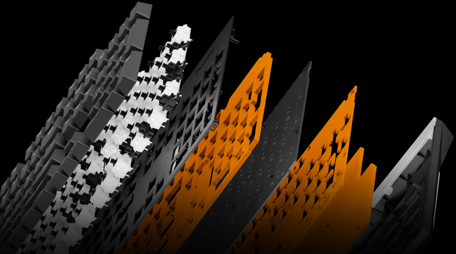 RULE OF 3 Triple-layered dampening A total of 3 sound-absorbing layers ensure that Light Mount lives up to the name of “be quiet!” and each gaming session is running smoothly without annoying typing noise. One layer of foam is between the switches and the PCB, another is under the PCB and a third fills the bottom housing. Any potential echoing noises are immediately muted. | ![]() |